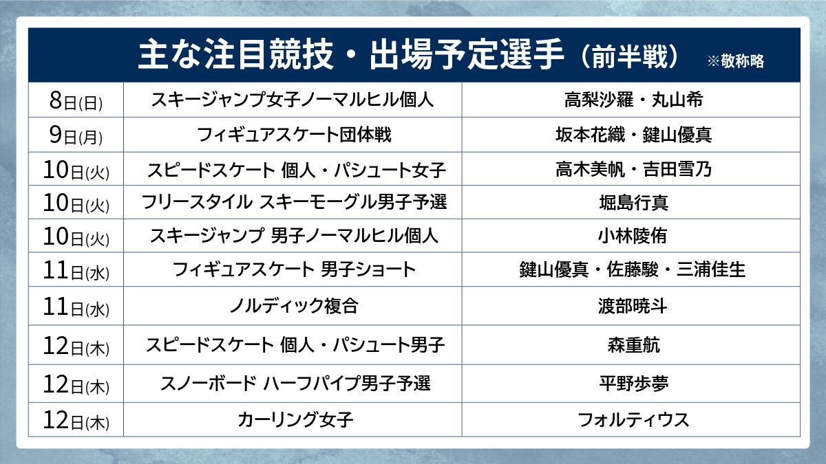 冬季オリンピックとして初の2都市で開催され、ミラノは夏冬通じて初、コルティナは1956年以来70年ぶり2度目です。2月5日から競技が始まり、2月6日にサンシーロ(ジュゼッペ・メアッツァ・スタジアム)で開会式が行われます。日本人選手の注目競技を中心にまとめています。