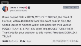 ホルムズ海峡48時間以内に開放を トランプ大統領 イランの発電所を壊滅させると警告