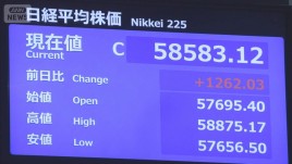 日経平均株価終値 史上最高値5万8583円(前日比+1262円) 米株高や円安影響