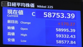 日経平均株価終値 2日連続の最高値更新 5万8753円(前日比+170円)