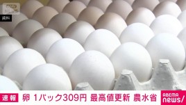 卵(サイズ混合・10個入り)309円で最高値更新 農水省食品価格動向調査