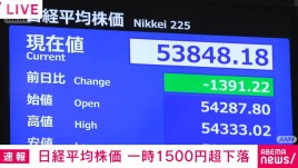 日経平均株価 下落幅一時2000円超の全面安 イラン情勢懸念で原油先物価格が上昇