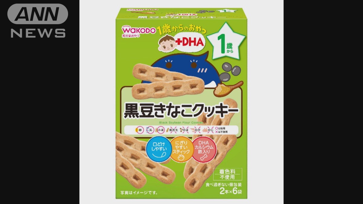 自主回収するのは「1歳からのおやつ+DHA黒豆きなこクッキー」の一部で、賞味期限の表示が「2023.1/B0」「2023.1/B1」「2023.2/B4」の3種類です。