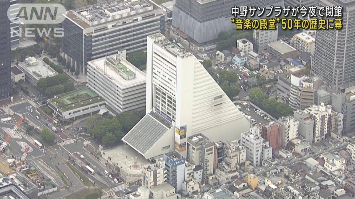音楽の殿堂として半世紀にわたって親しまれてきた複合文化施設「中野サンプラザ」が2日閉館します。