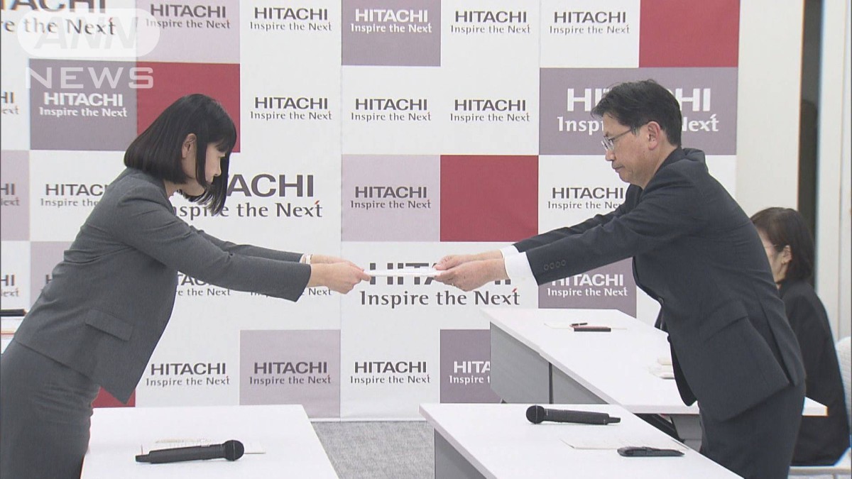 日立製作所は東京本社で労使交渉を行い、労組の半沢美幸中央執行委員長がベースアップ1万3000円などの賃上げを求める要求書を提出しました。