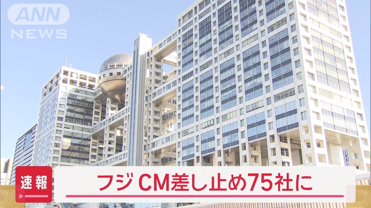 フジテレビによりますと、一連の報道を巡ってCMを差し止めたスポンサー企業は20日時点で、合わせて75社に上るということです。