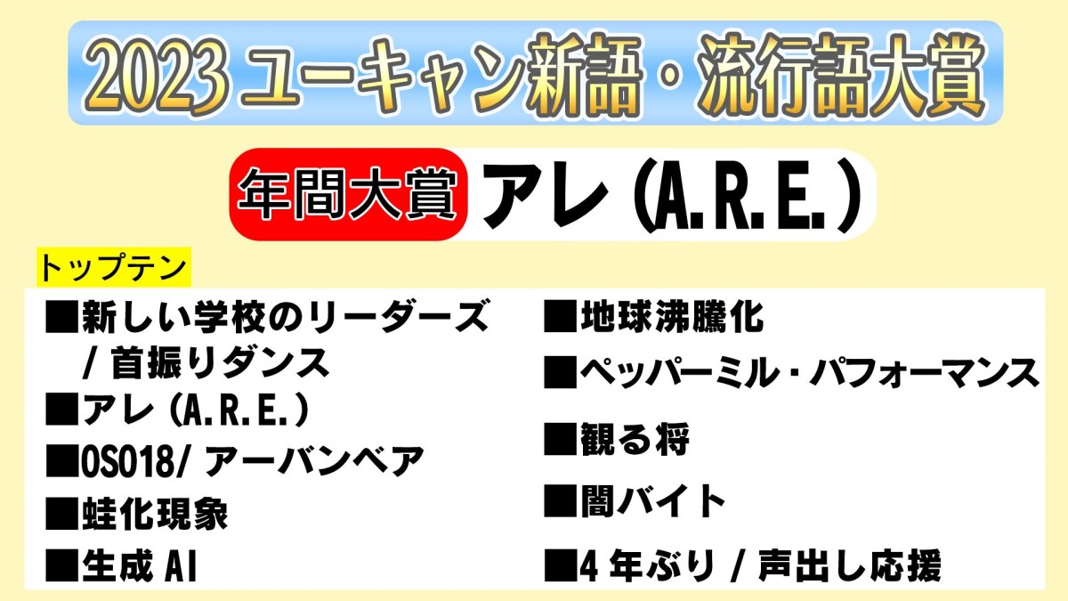 「2023ユーキャン新語・流行語大賞」が発表され、今年の年間大賞には阪神タイガース・岡田監督の「アレ(A.R.E.)」が選ばれました。