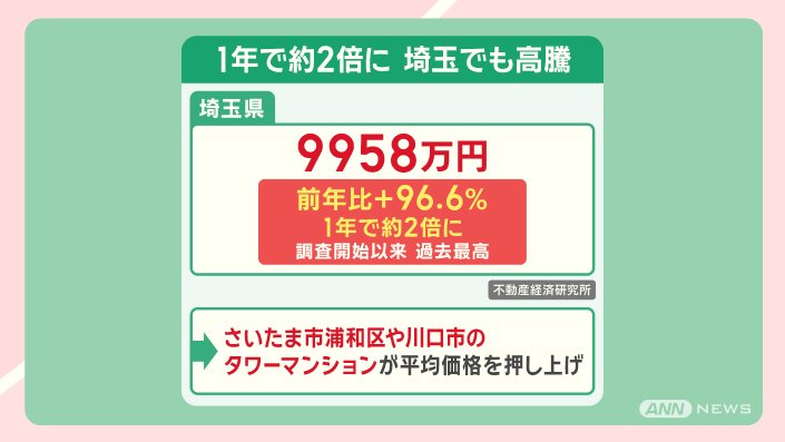 ■首都圏のマンション 衝撃の価格 埼玉は1年で約2倍の高騰