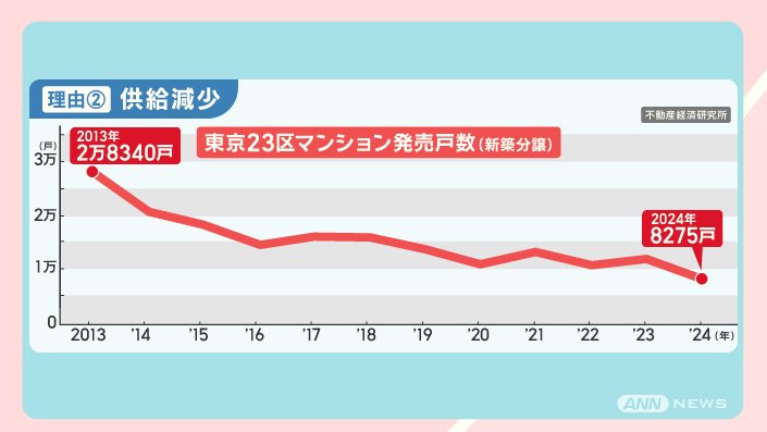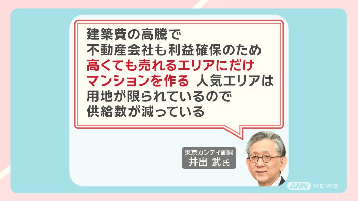 「建築費の高騰で、不動産会社も利益確保のため、高くても売れるエリアにだけマンションを作る。人気エリアは用地が限られているので、供給数が減っている」ということです。