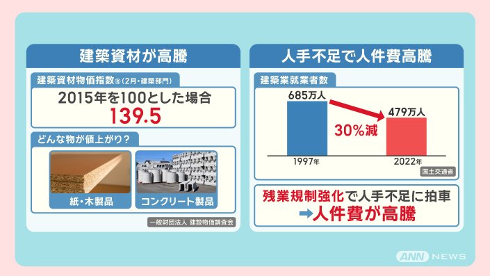 建築資材が高くなり、人件費も高くなっているため、建築費が高くなっています。