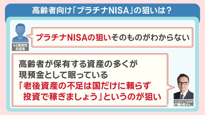 高齢者向けの『プラチナNISA』の検討が開始されています。