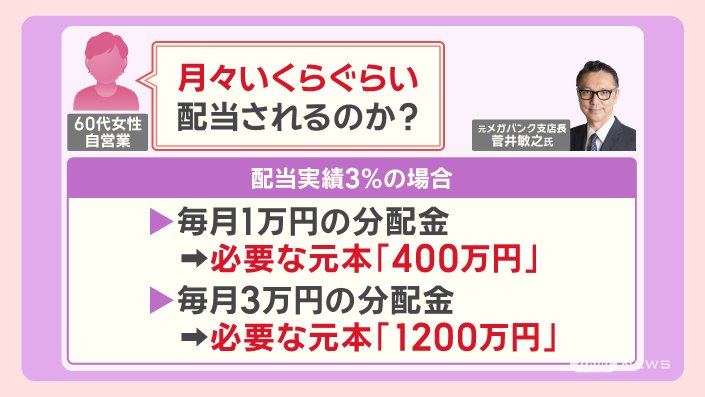 菅井さんによると、例えば、月の配当実績が3%の場合、