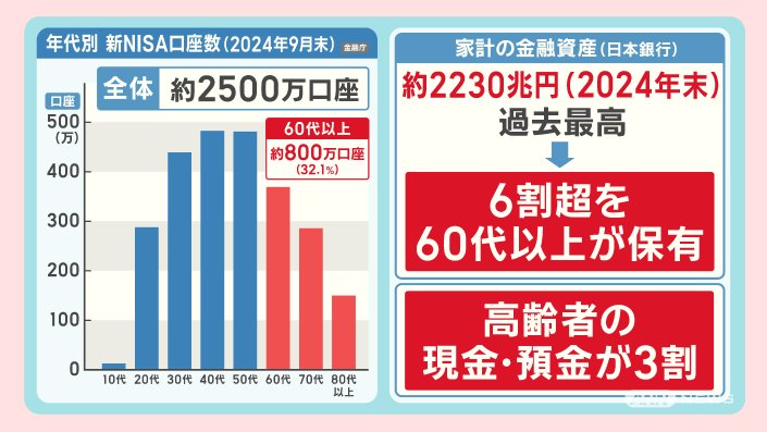2024年9月末時点で、全体で約2500万口座、60代以上が約800万口座です。