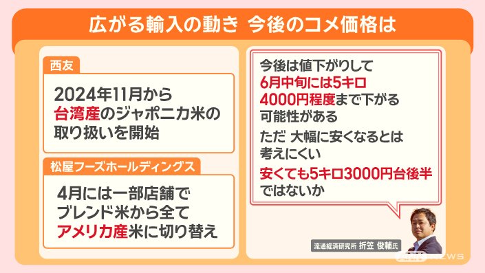 ■輸入米拡大の動き コメ価格「今後は値下がり」の可能性も