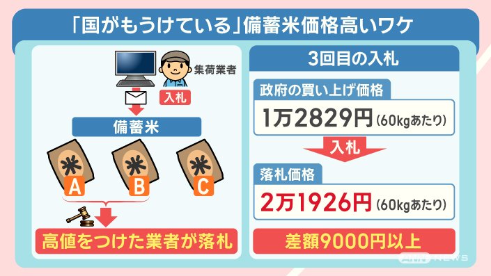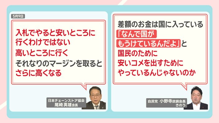 「差額のお金は、国に入っている。『なんで国が儲けているんだよ』と。国民のために安いコメを出すためにやっているんじゃないのか」