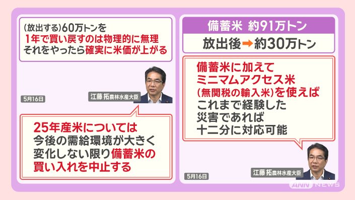 「備蓄米に加えて、ミニマムアクセス米(無関税の輸入米)を使えば、これまで経験した災害であれば十二分に対応可能」