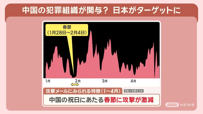 2025年1月〜4月を見ていくと、中国の祝日にあたる春節の期間に攻撃が激減しています。