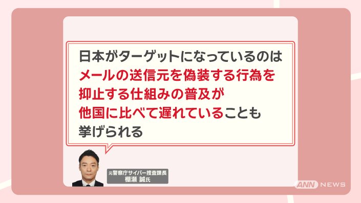 「日本がターゲットになっているのは、メールの送信元を偽装する行為を抑止する仕組みの普及が、他国に比べて遅れていることも挙げられる」ということです。