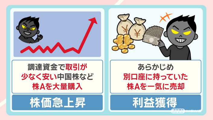 その調達した資金で、取引が少なくて安い中国株などの株を大量に購入します。