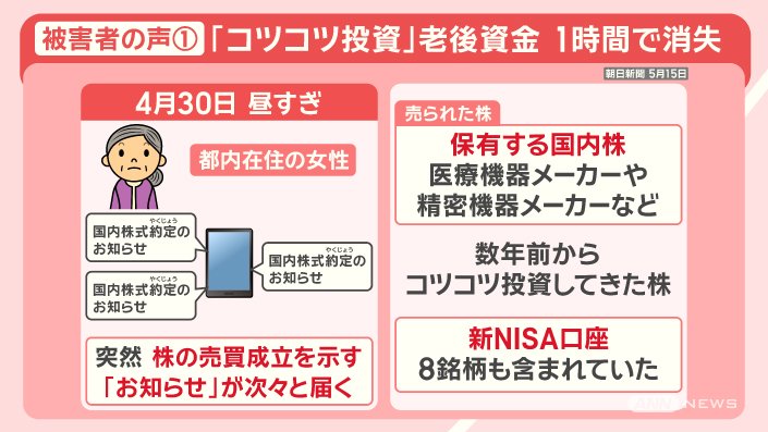 ■『コツコツ投資』老後資金“口座乗っ取り”で2100万円消失