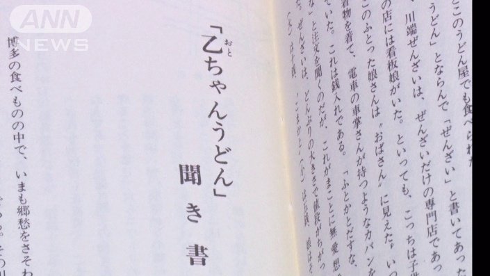 博多の歴史や文化を記した貴重な文献の中に、乙ちゃんうどんを発見しました!挿絵を見ると、のれんに確かに「ごぼう天」の文字。さらに「うどんのすめ(=だし)もおいしかったが、裏で揚げていたイモ、ゴボウ、イワシなど入れて食べるとさらにおいしかった」との記載がありました。