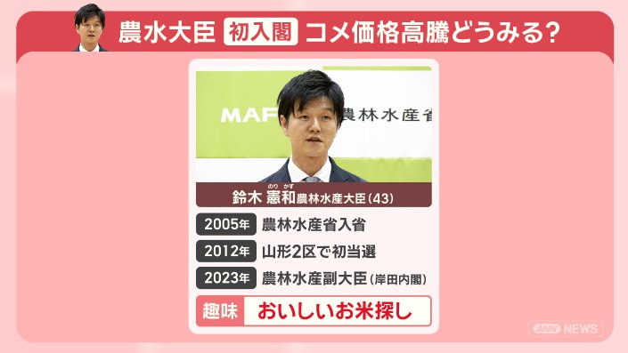 前の政権で農水大臣だった小泉さんとの違いや、高騰するコメ価格、コメの増産などについてどうするのかも聞いていきます。
