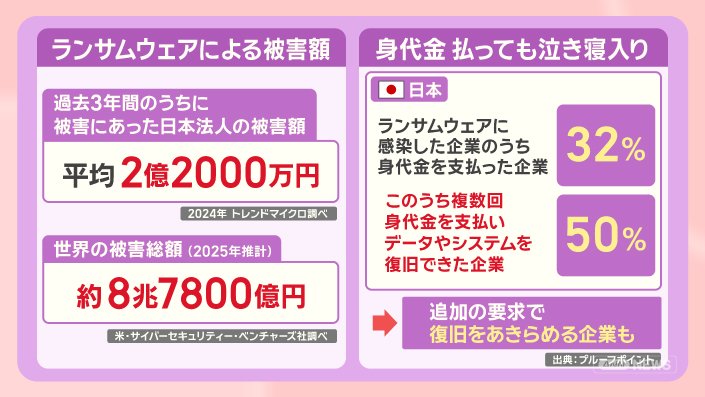 過去3年間のうちに被害にあった日本法人の被害額は、平均で2億2000万円、世界での被害額は、2025年推計で、約8兆7800億円です。