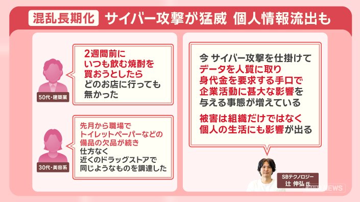 サイバー攻撃で物流が停止し、食や医療の現場に混乱が広がっています。