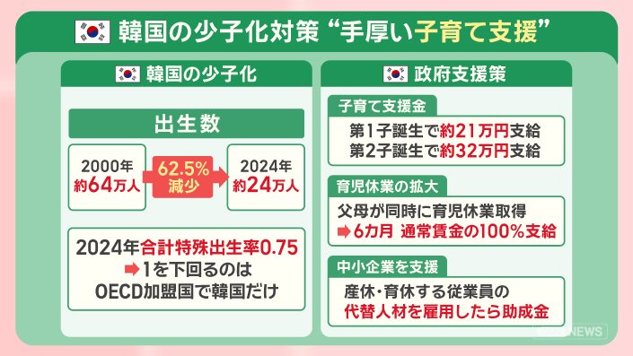 ■韓国 手厚い子育て支援も止まらぬ人口減少