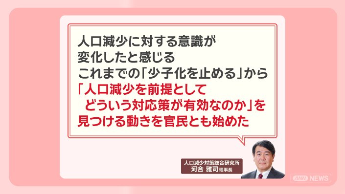 「人口減少に対する意識が変化したと感じるこれまでの『少子化を止める』から、『人口減少を前提として、どういう対応策が有効なのか』を見つける動きを官民ともに始めた」