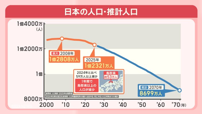2025年は1億2321万人で、2024年と比べ、59万人以上、減少しています。
