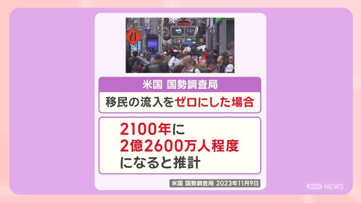移民の流入をゼロにした場合、2100年には、2億2600万人程度になるという推計もあります。