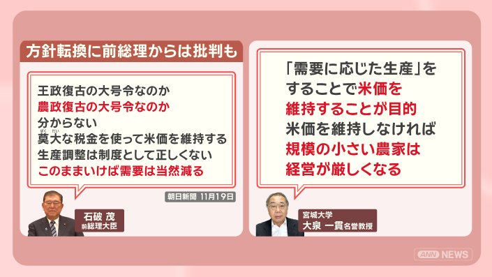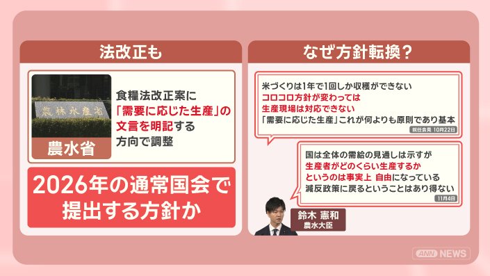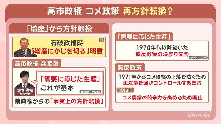「需要に応じた生産、これが基本」と前の政権から『事実上の方針転換』となりました。