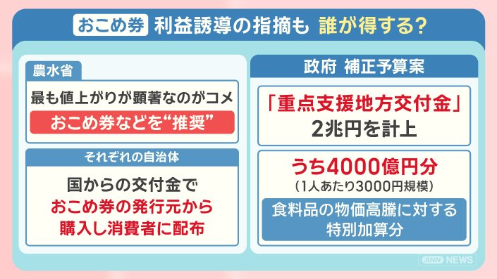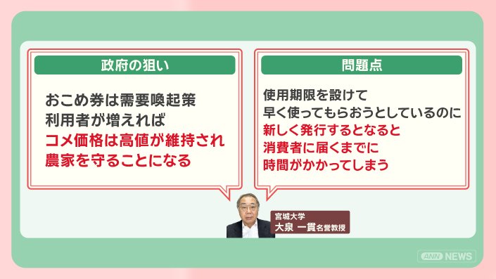 そんな中、政府の「おこめ券」に疑問の声が出ています。