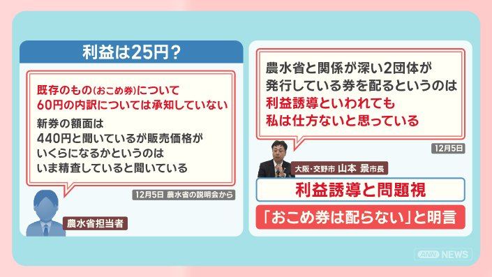 ■『おこめ券』誰が得?2団体への利益誘導 問題視の自治体も