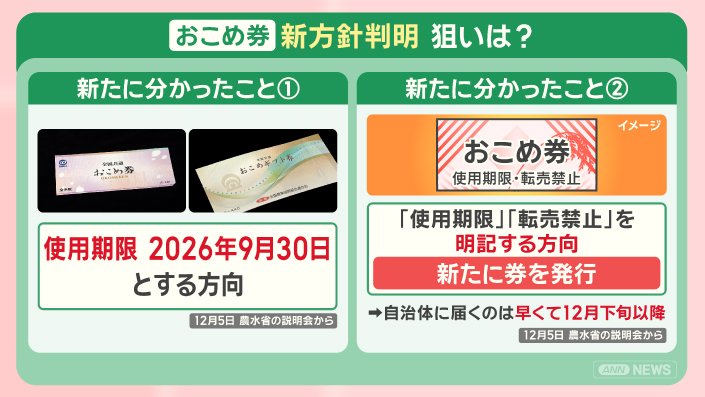 ■おこめ券の新方針 使用期限・転売禁止明記へ 問題点も