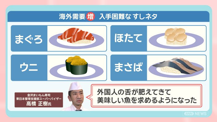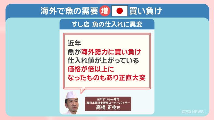 すしネタとなる日本産の水産物の争奪戦が激しくなっていて、日本が買い負けるケースも起きています。