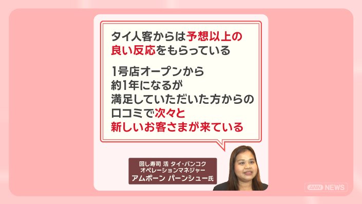 「タイにすし店が増え、外食の幅が広がった。特別な日には『おまかせ』できる店、気軽に彼氏や友人と行きたい時には、回転すし店と、使い分けている」と話しています。