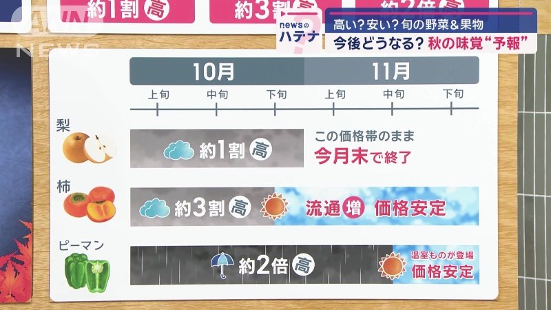 経済 スーパーJチャンネル 2024年10月8日 07:30 ブドウ・ナシ…「秋の味覚」価格どうなる? スーパー社長に聞く、お得な野菜&果物 2024年10月8日 07:30 /3 今の時期に、お買い得な「秋の味覚」 今少し高くなっているのが… 価格は、いつ頃落ち着く? この写真の記事・動画はこちら ・カキの“生食用”と“加熱用”何が違うかご存じですか?「鮮度」ではないんです!実は・「川に白い水が流れている」で発覚 38年間トイレなどの汚水垂れ流し・100年以上“猛暑日知らずの街”今年も「エアコンは使っていない」移住の相談は約2倍 さらに、夏でもサウナが味わえる“涼しい街”も・“花柄ミニスカ”女性 コンセントに謎の“テープ貼り”…伊豆で被害多発・保存容器のタッパーが破産申請 トップ 経済 ギャラリー