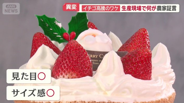 イチゴを一粒丸ごと使用したクリスマスケーキ