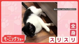 見つめて…スリスリ 全身で愛情表現するネコちゃん お相手はなんとニンジン!