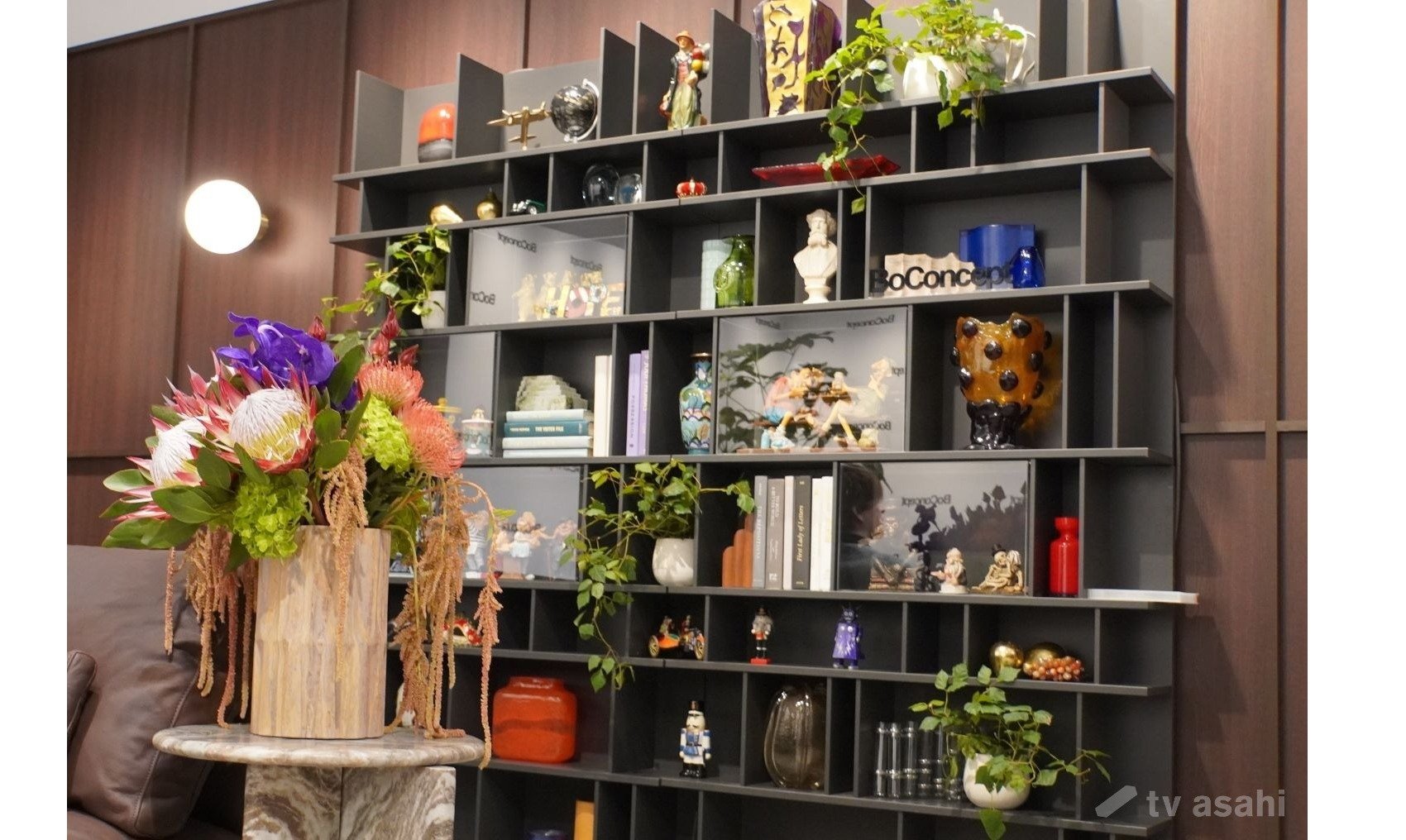いろんなジャンルのオブジェやフィギュアが並んだ棚。中には城田の私物ではないものもあるが、ファンの方は一見の価値ありです。