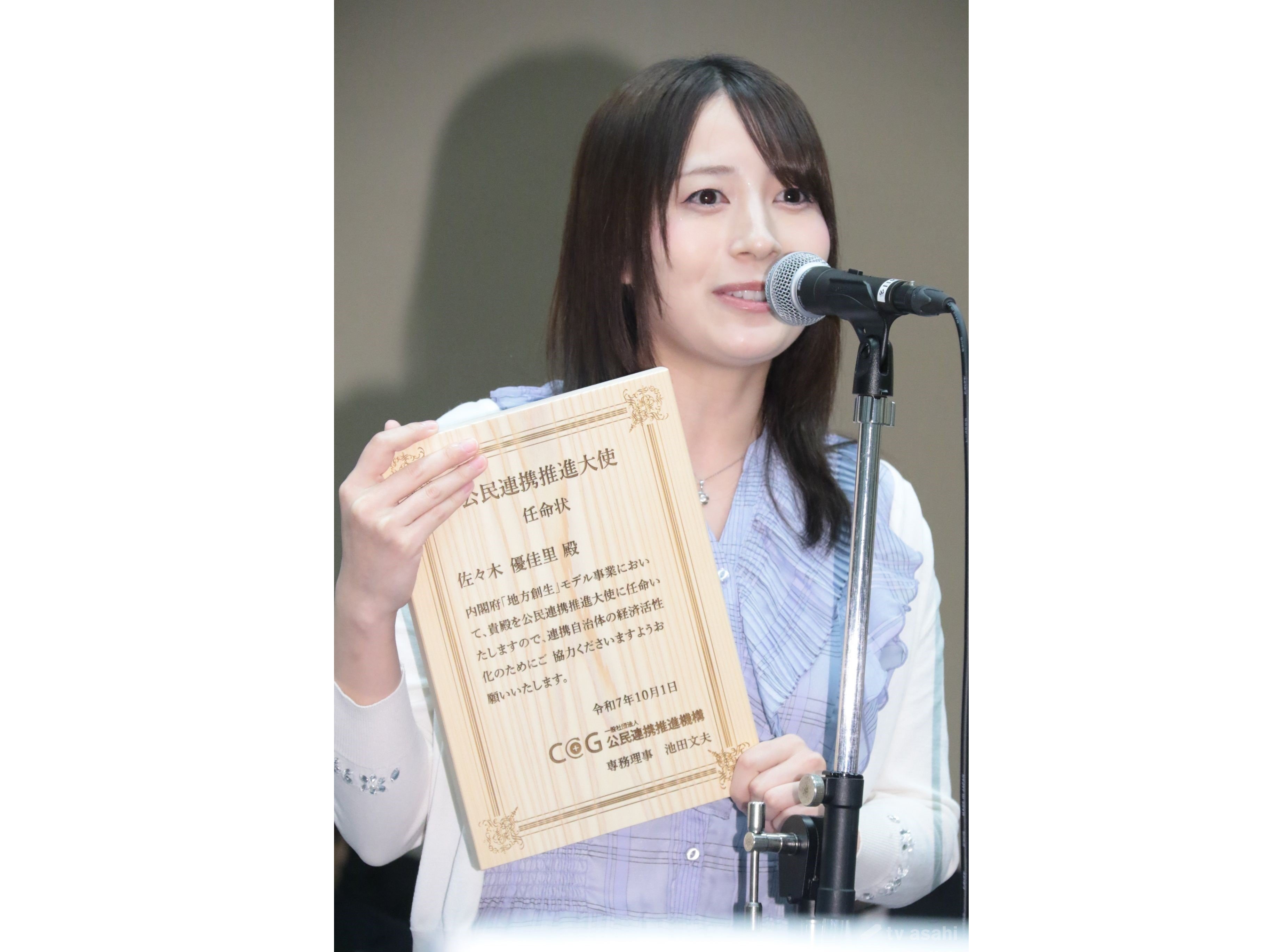 佐々木優佳里は、それぞれの地域の魅力を語り「この活動を通して、この3つの地域の魅力につながるように、私らしく精いっぱい発信を続けます」と意気込みを語った。
