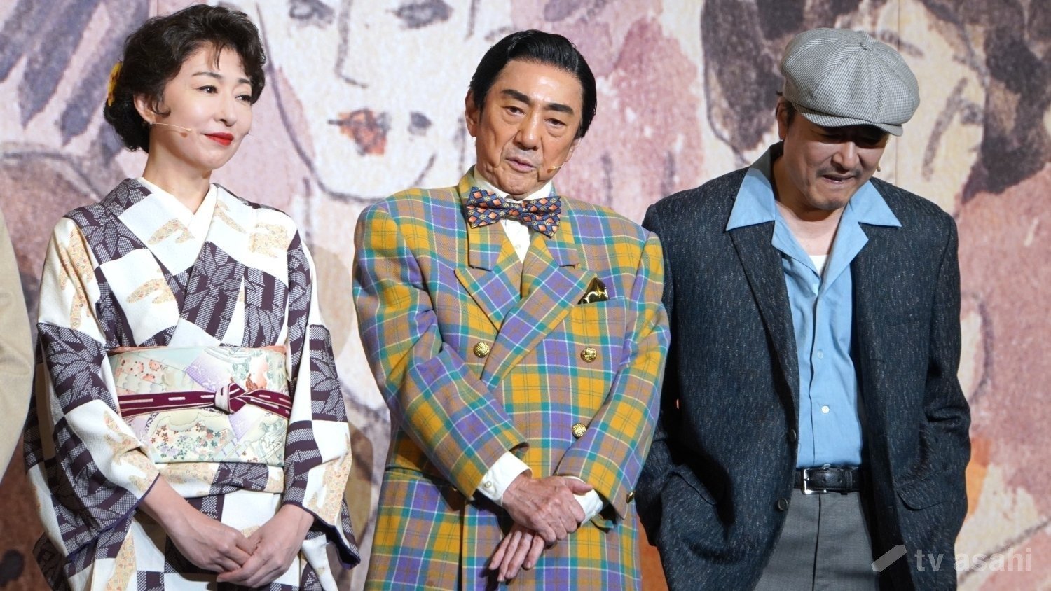 市村正親は今作で苦労したところを問われると、「みんながからんでいるところも大変なので、どこがって全部ですね」とぶっちゃけつつ、「どんどん自分に苦しみを与えていくと、苦しみに耐えてやっていること自体が、お客さんが見て何かを得てくれるのかなと。楽にしているよりは、苦しんでいる姿が、もしかするとエノケンの物語の正しい方向なのかなという気はしています。ただ、体が持つかどうかがね…持たせます!」と最後は冗談めかして笑いを誘った。
