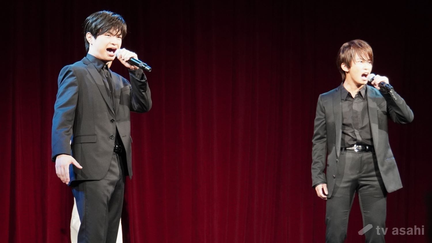 会見冒頭には劇中歌を披露した加藤&渡邉の主演コンビ。