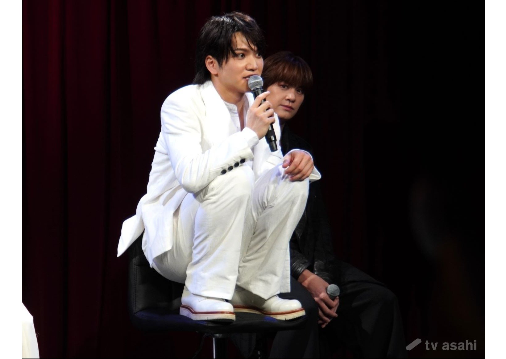 Lを演じる三浦は、おなじみのこの体勢で歌うことがあり、稽古中もこの体勢でいることが多いが、「すごい失礼な奴と思われないかな」と心配しているそう。