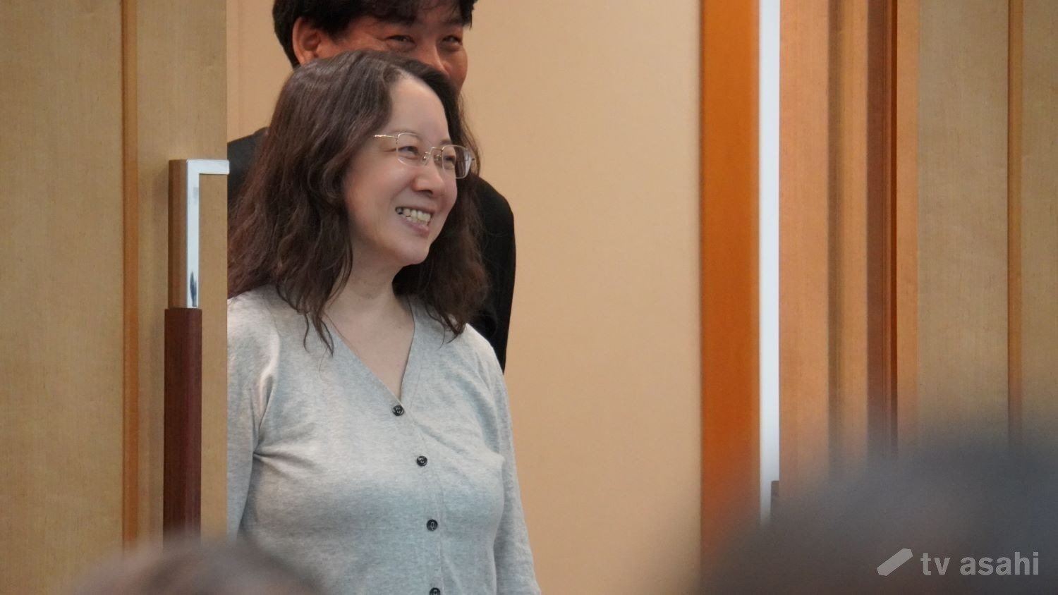 会場の端から高須院長の会見の様子を見守る西原理恵子氏。