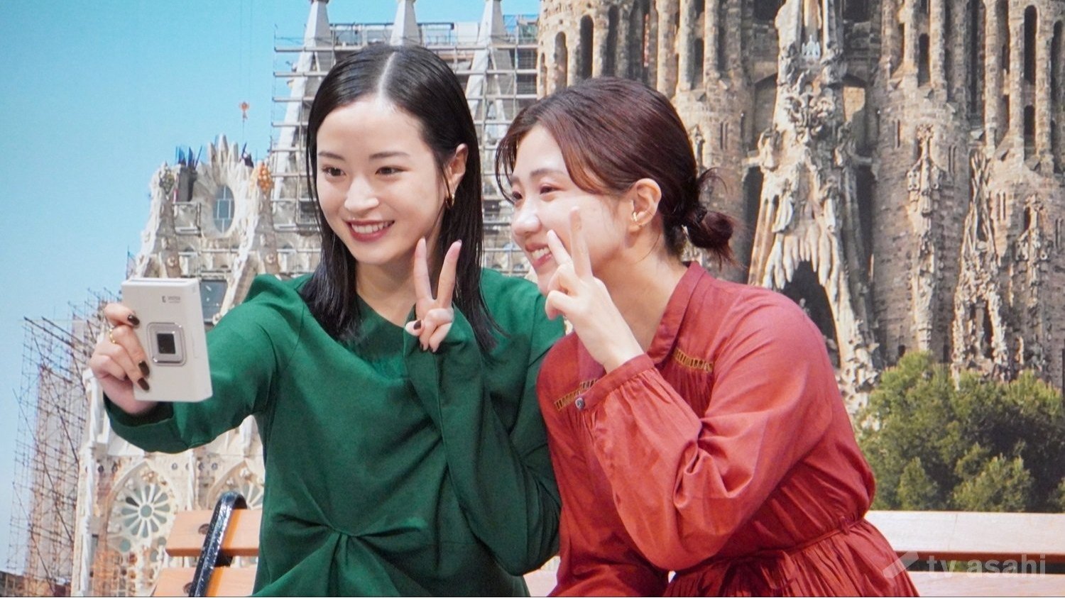 スペインのセットでは、名所のサグラダ・ファミリアを背景に自撮り写真をパシャリ。広瀬は「もうここスペインです」と大満足だった。