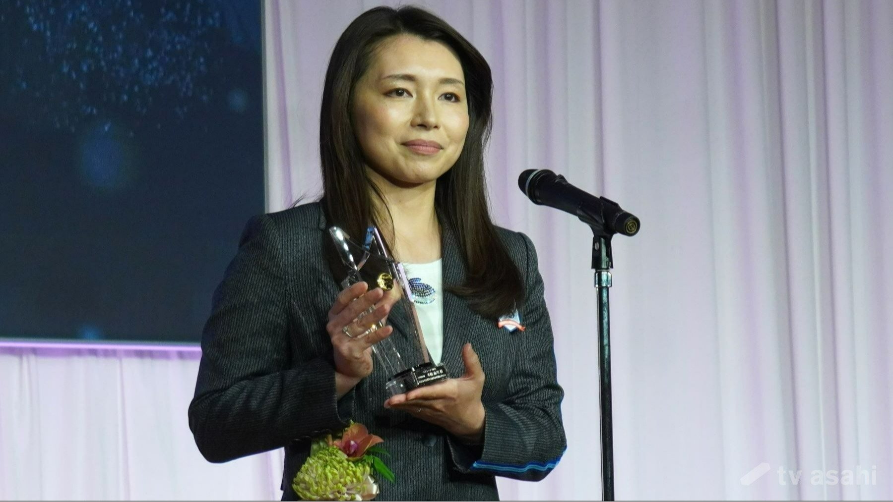 30代部門を受賞したカーリングの本橋麻里氏。「第一線をお休みしてからトロフィーをもらうことが大変減りましたので、(今回)実際にトロフィーをもらうと重みがあってうれしい気持ちでいっぱいです」と笑顔。「パサつかせないようにケアをしています。カーリングは湿度を落としながら競技をやるので、とてもパサつく会場。肌にも髪にもうるおいを無くさないようたくさんお水を飲んでいます」と明かした。