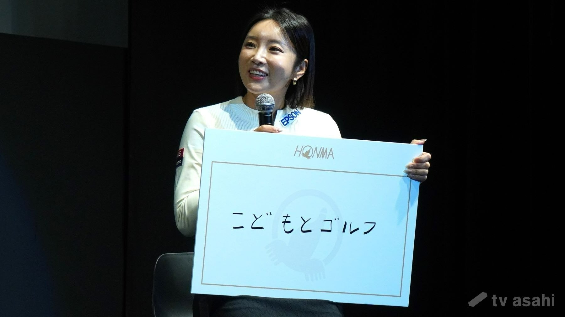これから挑戦したい「次の一打」としてイ・ボミプロは「こどもとゴルフ」と発表。「結婚して2年経ちまして、子どもがほしくなって。ゴルフが大好きなので子どもと一緒に試合が出来たら」と目を輝かせて話していた。